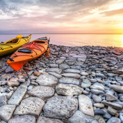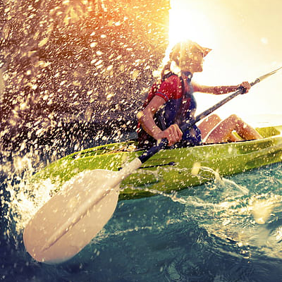 We paddle along the coast and enjoy the crystal clear waters, mighty cliffs, and hidden caves.